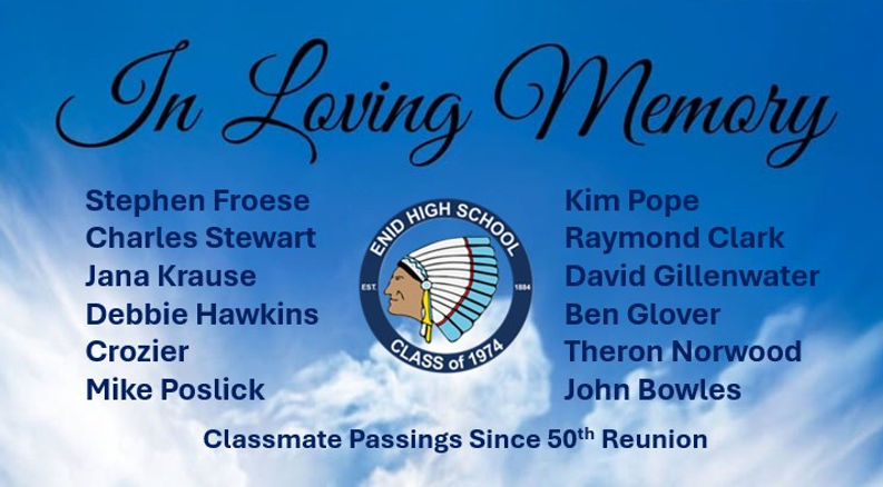 48% (43) “have” been involved in post 50th reunion activities, 35 live in Oklahoma, 27 in the Enid area, 4 in the OKC area, 8 out of state, 89% “did” attend the 50th reunion
